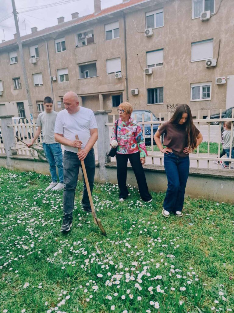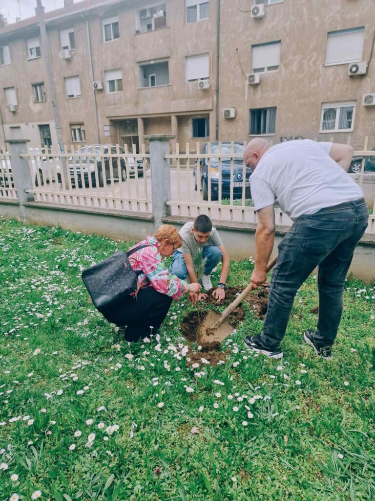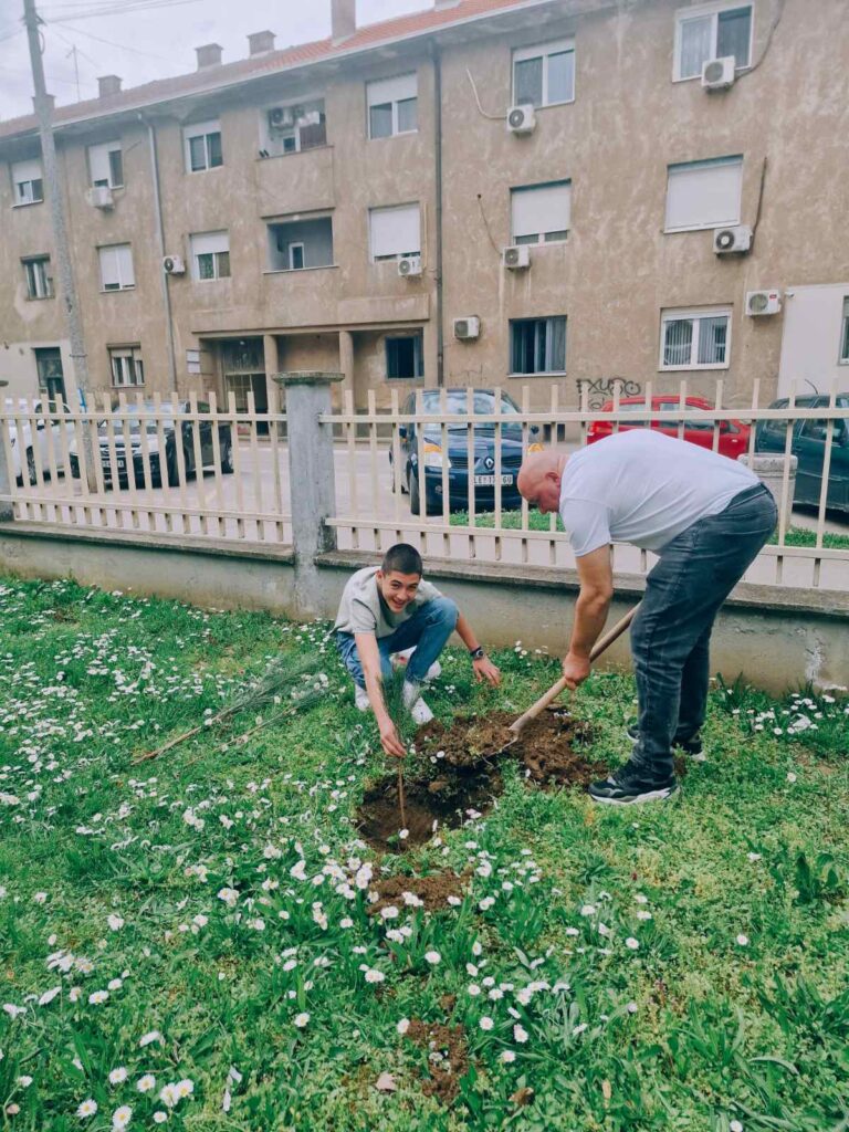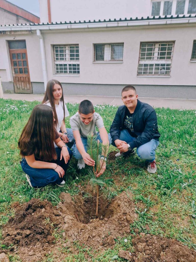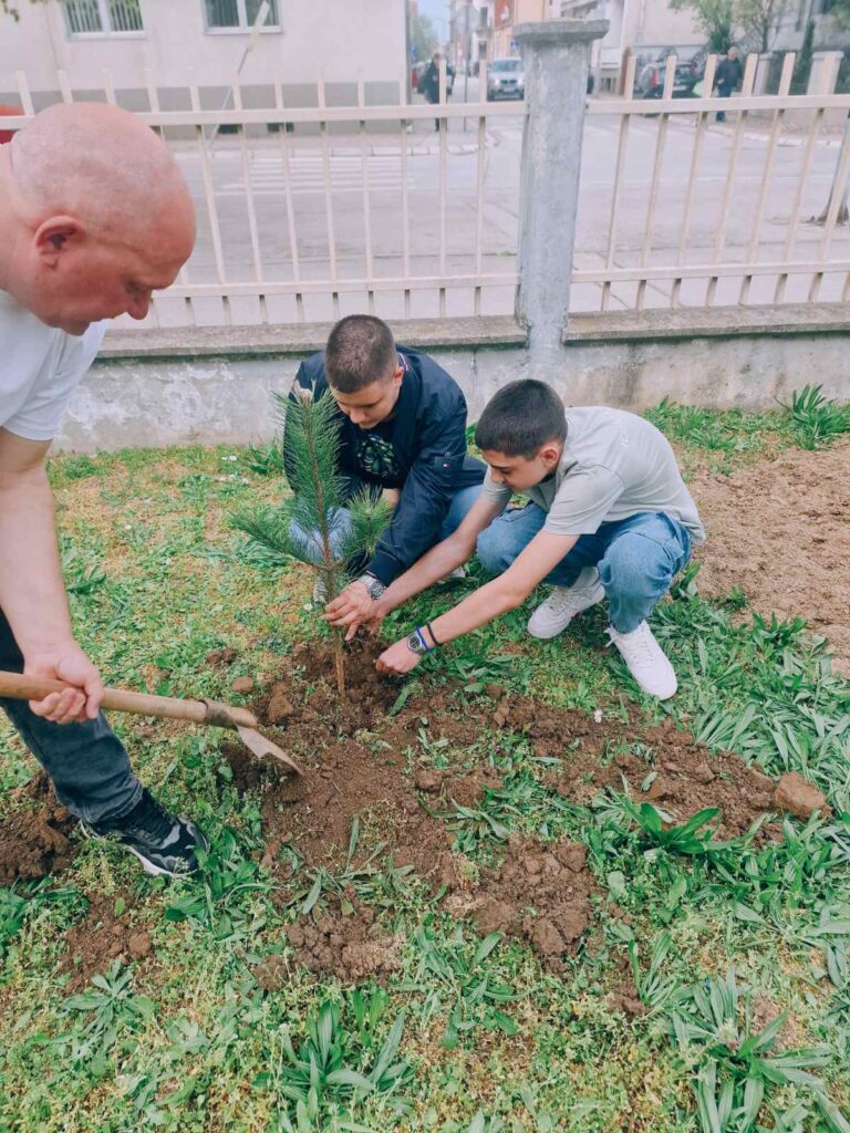 Као симбол борбе за здравије и тише окружење, остварена је сарадња са Одељењем за заштиту животне средине. Од њих смо добили саднице бора, које су ученици и професори заједно засадили у дворишту школе. Ова нова „зелена зона” неће само улепшати наш простор и пречистити ваздух, већ ће служити и као природна звучна баријера која ће помоћи у смањењу спољашње буке.