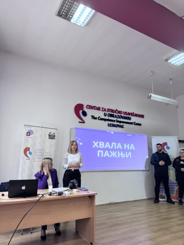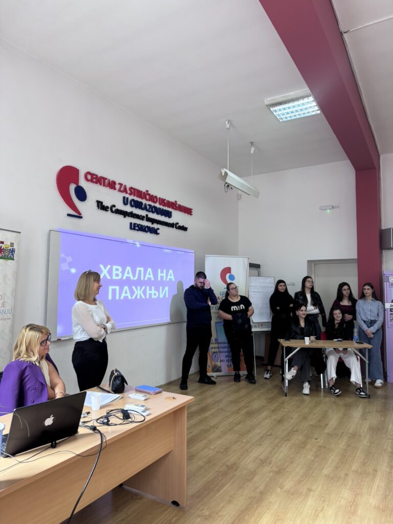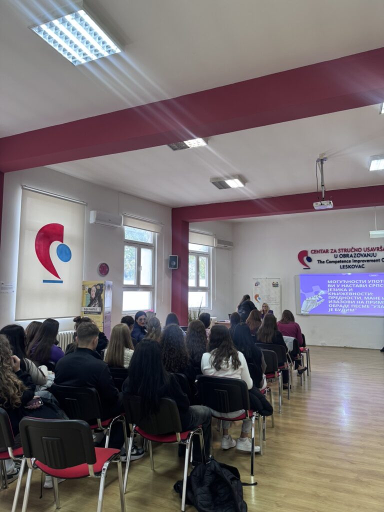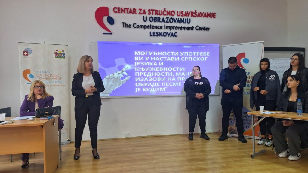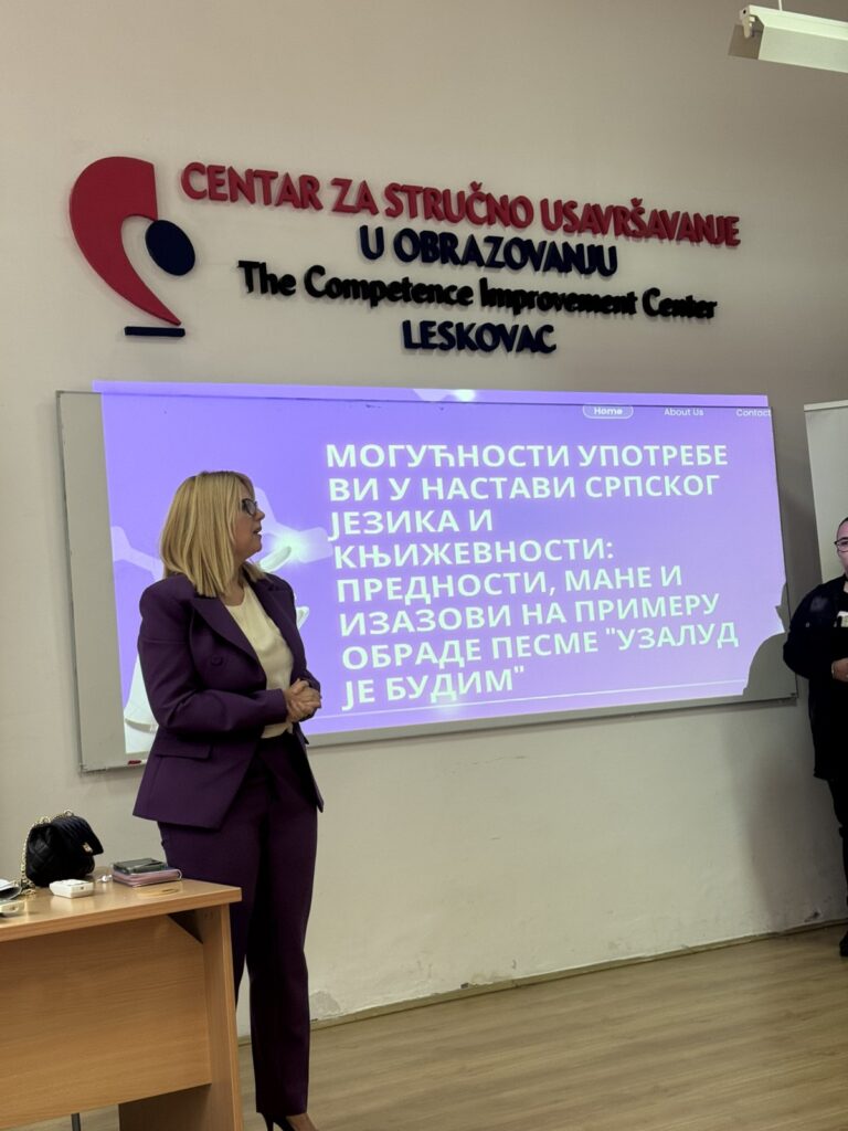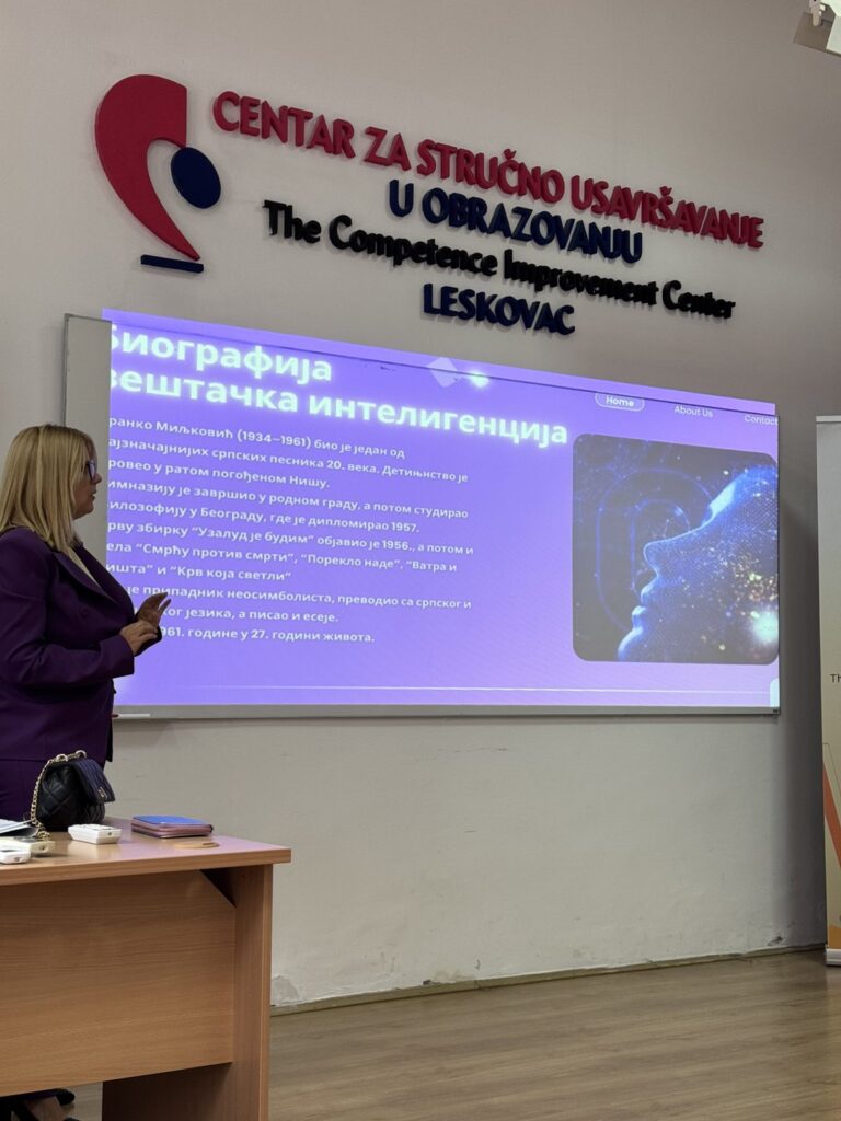 Као део дисеминације пројекта „Учионица будућности” – вештачка интелигенција у настави: потенцијал, социјални и етички изазови” одржан је у Центру за стручно усавршавање  угледни час Данијеле Радовановић, наставника српског језика и књижевности и координатора овог пројекта. Часу је асистирала Биљана Ђорђевић у својству педагошког саветника и модератора панел-дискусије, која је покренута након часа.